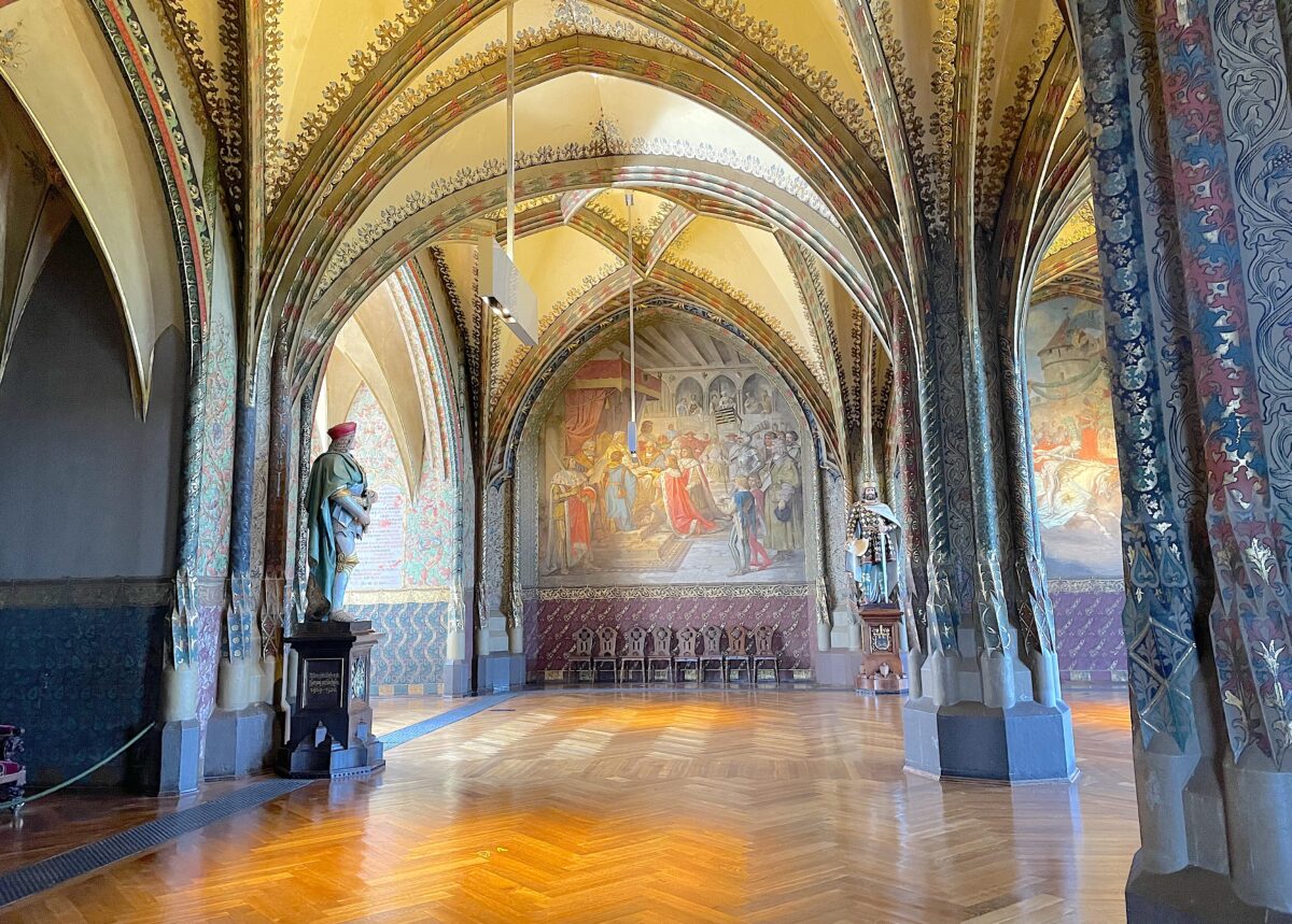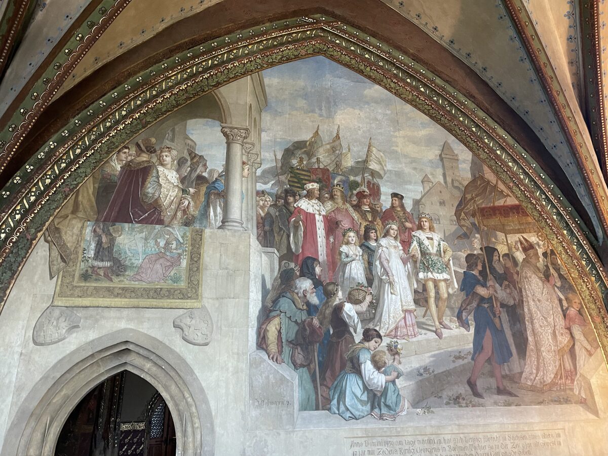 また、アルブレヒト城は現存する居城としてはドイツ最古といわれており、内部のアーチ形の柱と天井、壁画などは一見の価値があります。