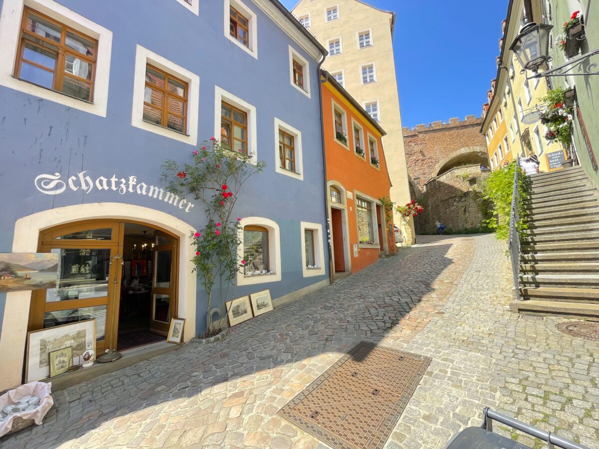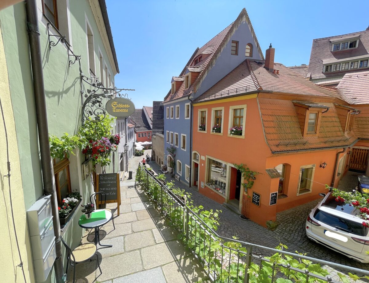 マルクト広場からアルブレヒト城へ行くには、Burgstraße ブルク通りを北へ行き、Schlossstufen という石段をせっせとのぼって城門をくぐります。