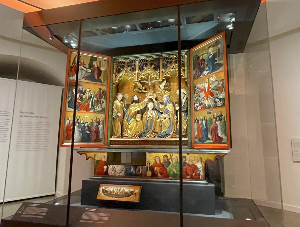 ▼ 1490年頃に制作された祭壇 Kilchberg altar の中央には、「聖母の戴冠」そして翼部分には様々な聖人が描かれています。