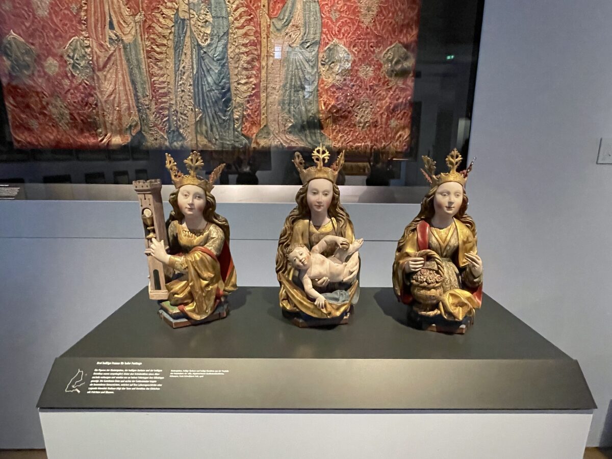 ▼ 15〜16世紀頃に造られた、左から「聖バルバラ、聖母マリア、聖ドロテア」の木彫像です。