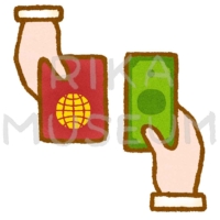 貨幣の偽造、違法取引、贋作などのイラストです。