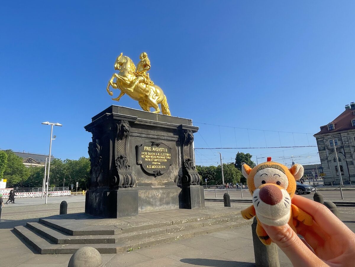 エルベ川に架かる Augustusbrücke アウグストゥス橋を渡ってすぐのところに、ローマ皇帝の衣装を着たアウグスト強王の金箔が貼られた有名な騎馬像があります。