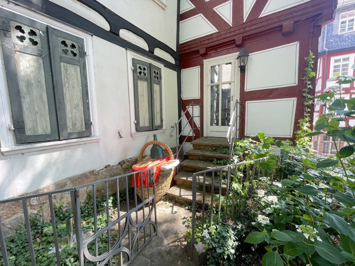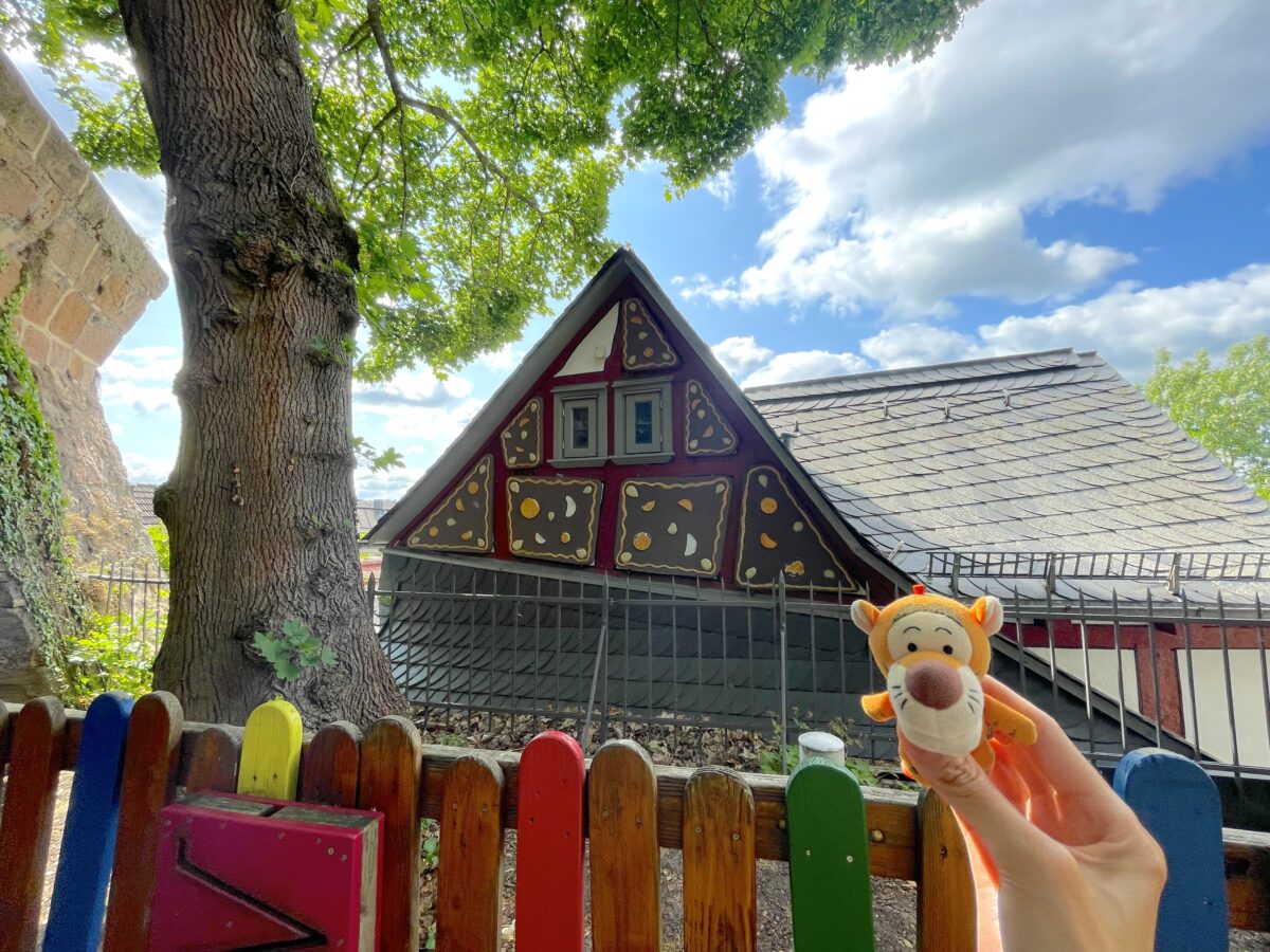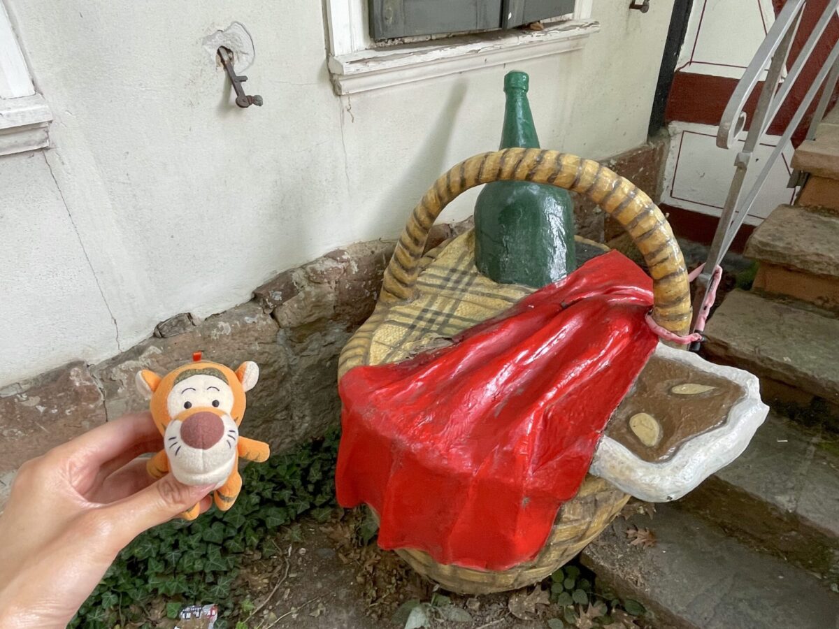 マルクト広場から北へ延びる道を進み、Ritterstraße リッター通りの角にあります木組みの家の入り口には、赤ずきんちゃんのバスケットのオブジェがあります。