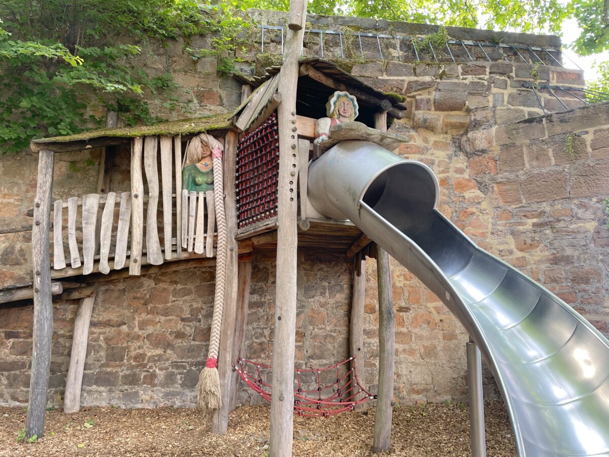 ▼ 公園の遊具には、ラプンツェルとシンデレラ(?)が顔をのぞかせていました。