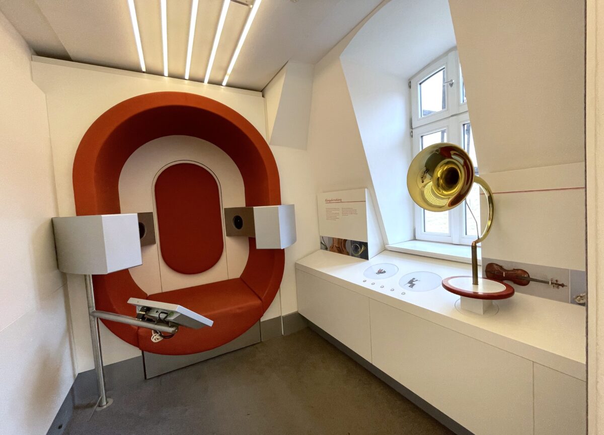 ▼ オーディオコーナーでは、ヘンデルの曲に包まれるような感覚を味わうことができます。