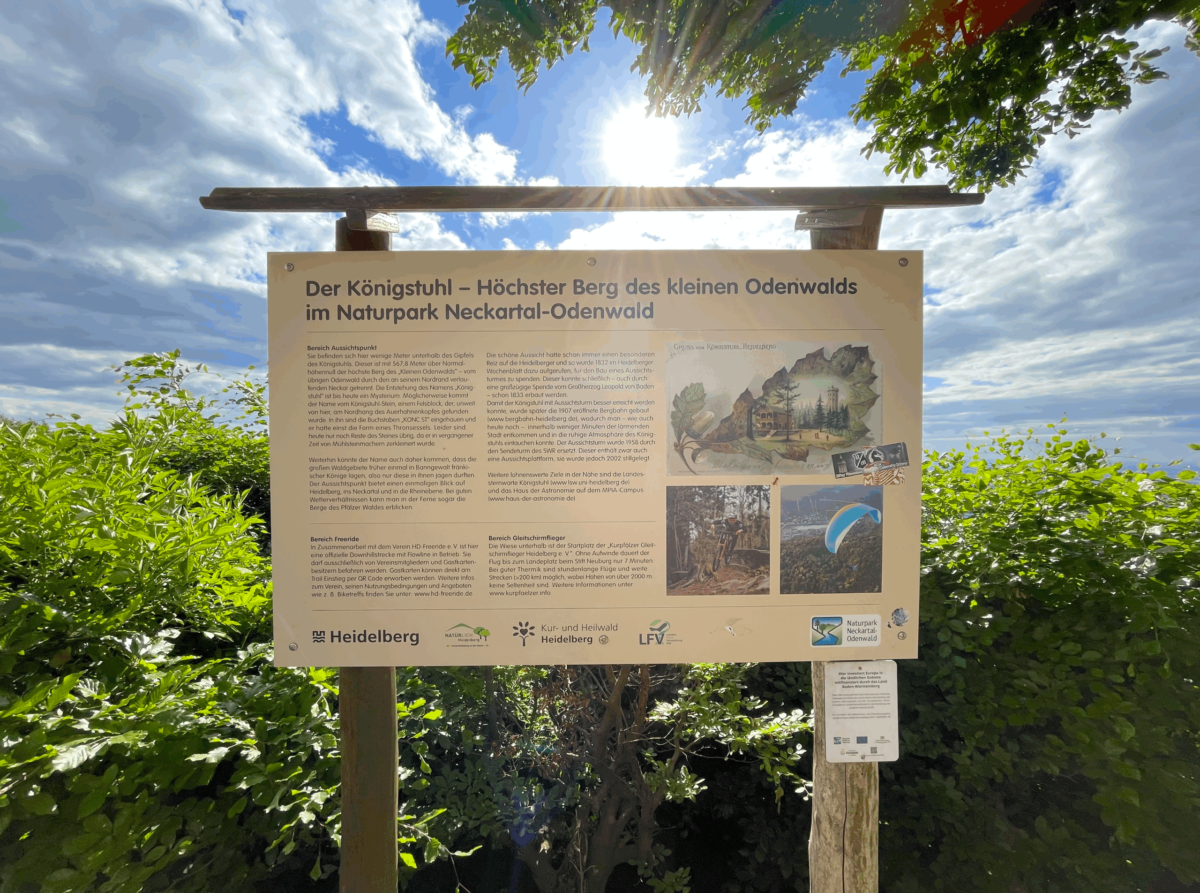 ▼ 案内板の中に、「ケーニヒシュトゥールという名前の由来は謎に包まれています。恐らく、ここからほど近い Auerhahnenkopf(直訳:ライチョウの頭)の北斜面にある巨石である ケーニヒシュトゥール・シュタイン(直訳:王の椅子の石)に由来するのでしょう。残念ながら、かつて石臼職人によって粉々に砕かれてしまったため、現在ではその痕跡しか残っていません。」と書かれています。