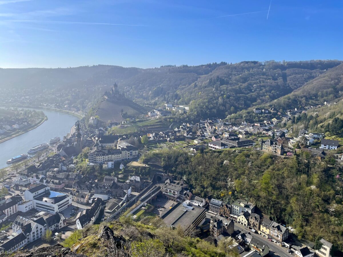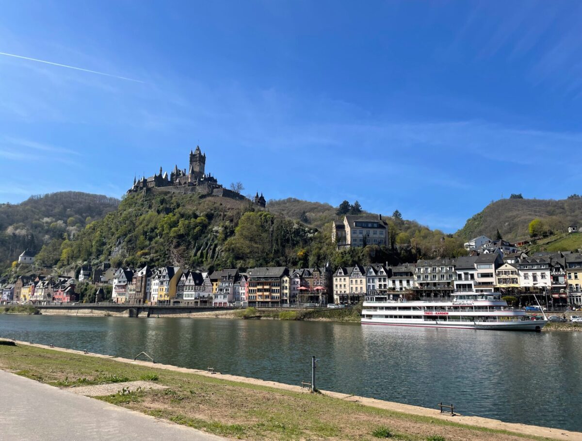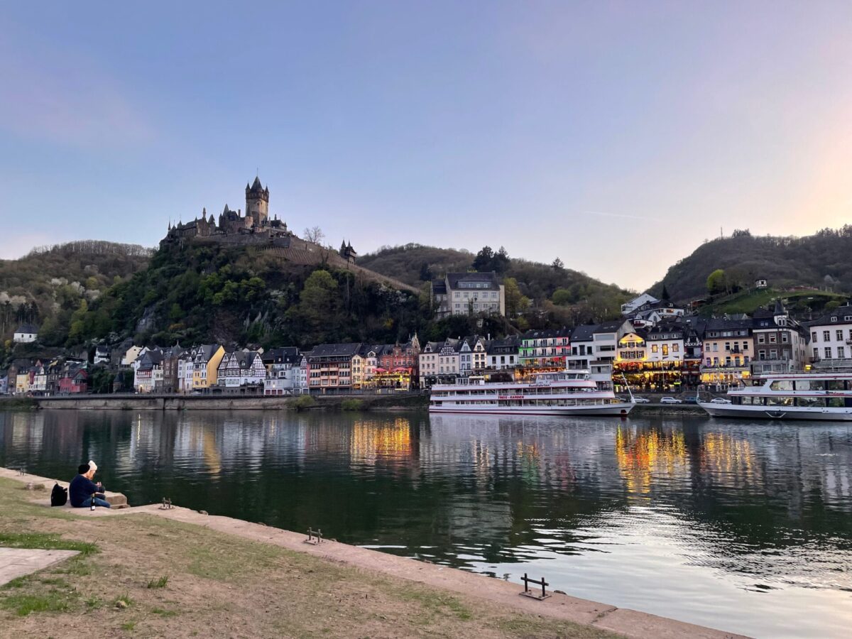 モーゼル川の対岸からは、ライヒスブルク城とブドウ畑、そして川沿いに並んだ家々が織りなす美しい景色を眺めることができ、コッヘム屈指の撮影スポットとなっています。