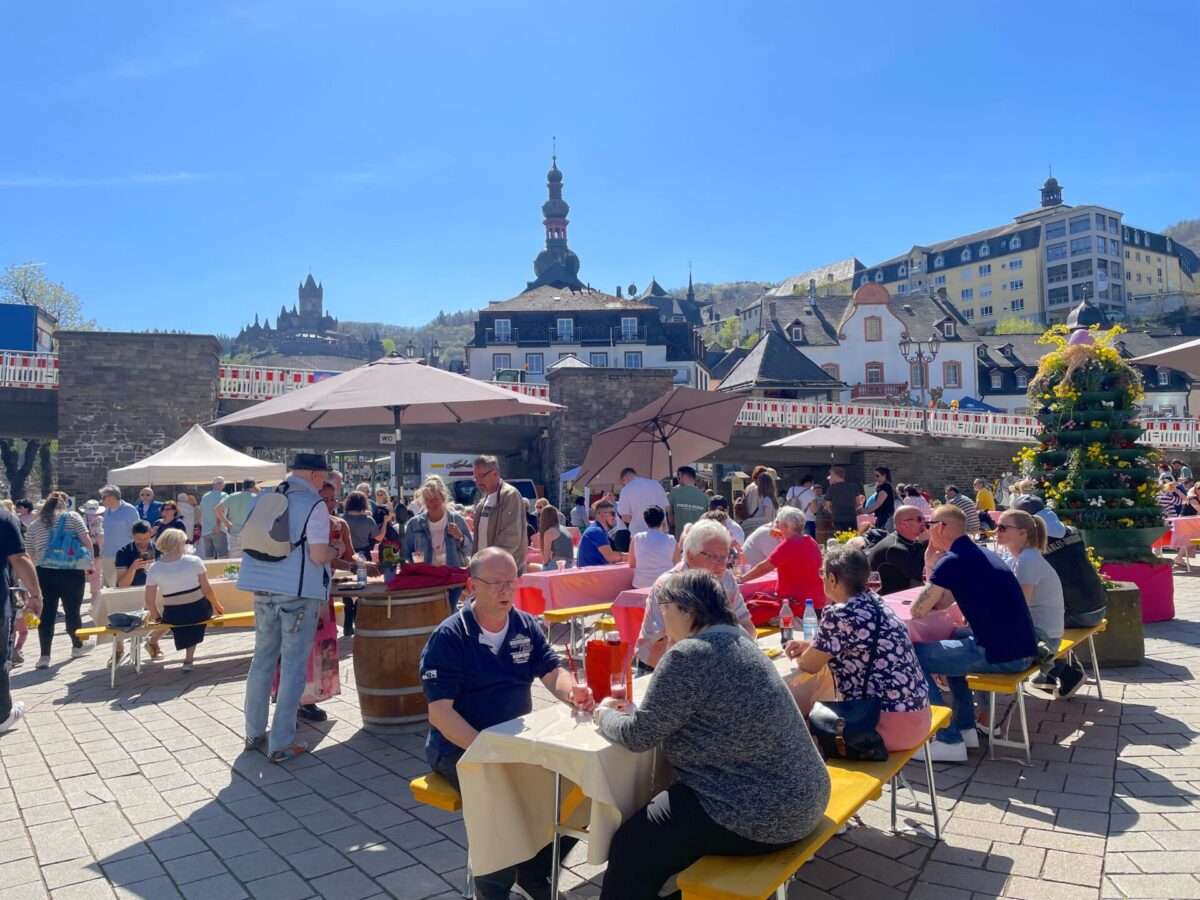 そんなモーゼル川のほとり、コブレンツからRE快速でおよそ30分ほどの位置に、コッヘムという小さな美しい町があります。日本のガイドブックでは少ししか紹介されていないことが多く、「ドイツ人が殺到するワインの街」として有名で、一年中観光客で賑わっています。