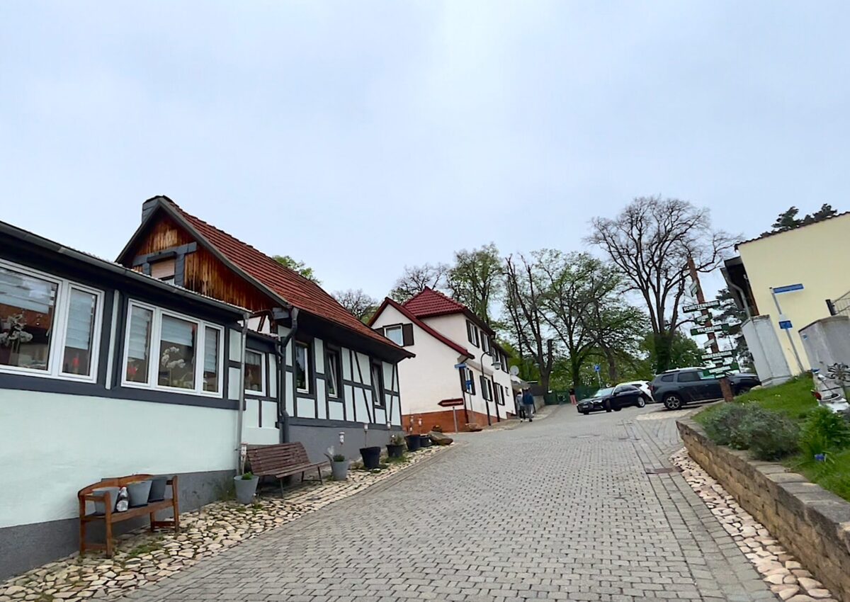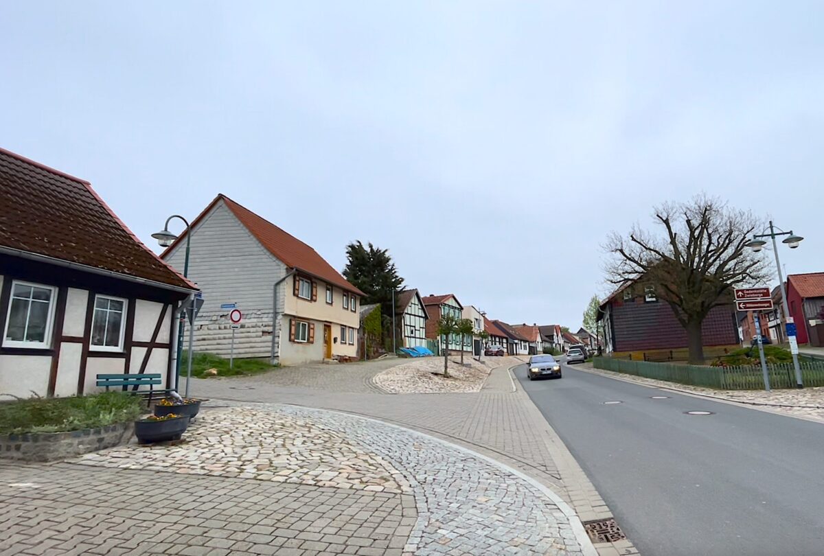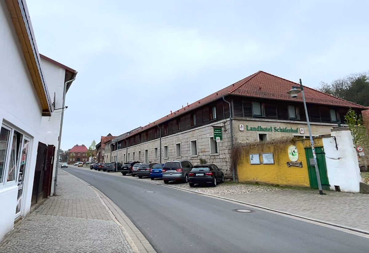 バス停のある Dorfstraße ドルフ通りを東へと進んでいくと Quedlinburger Straße クヴェトリンブルガー通りになって、Landhotel Schäferhof Langenstein ラントホテル シェーファーホーフ というホテルの前を通り過ぎます。