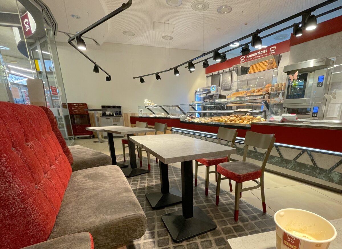 ▼ ハルバーシュタット駅です。4月でしたがこの日はとても寒くて、バスを待つ間に駅の中のカフェでひと休みしました。