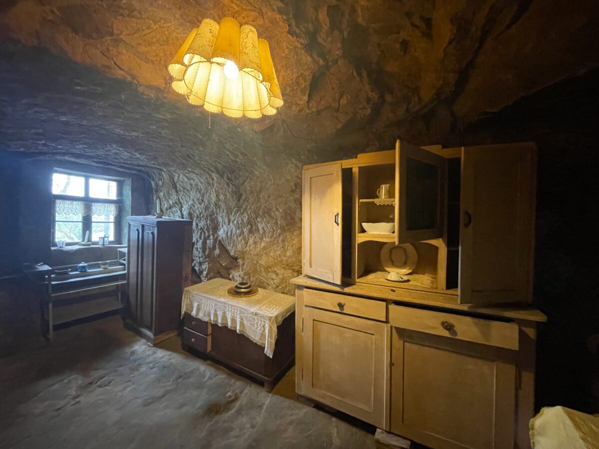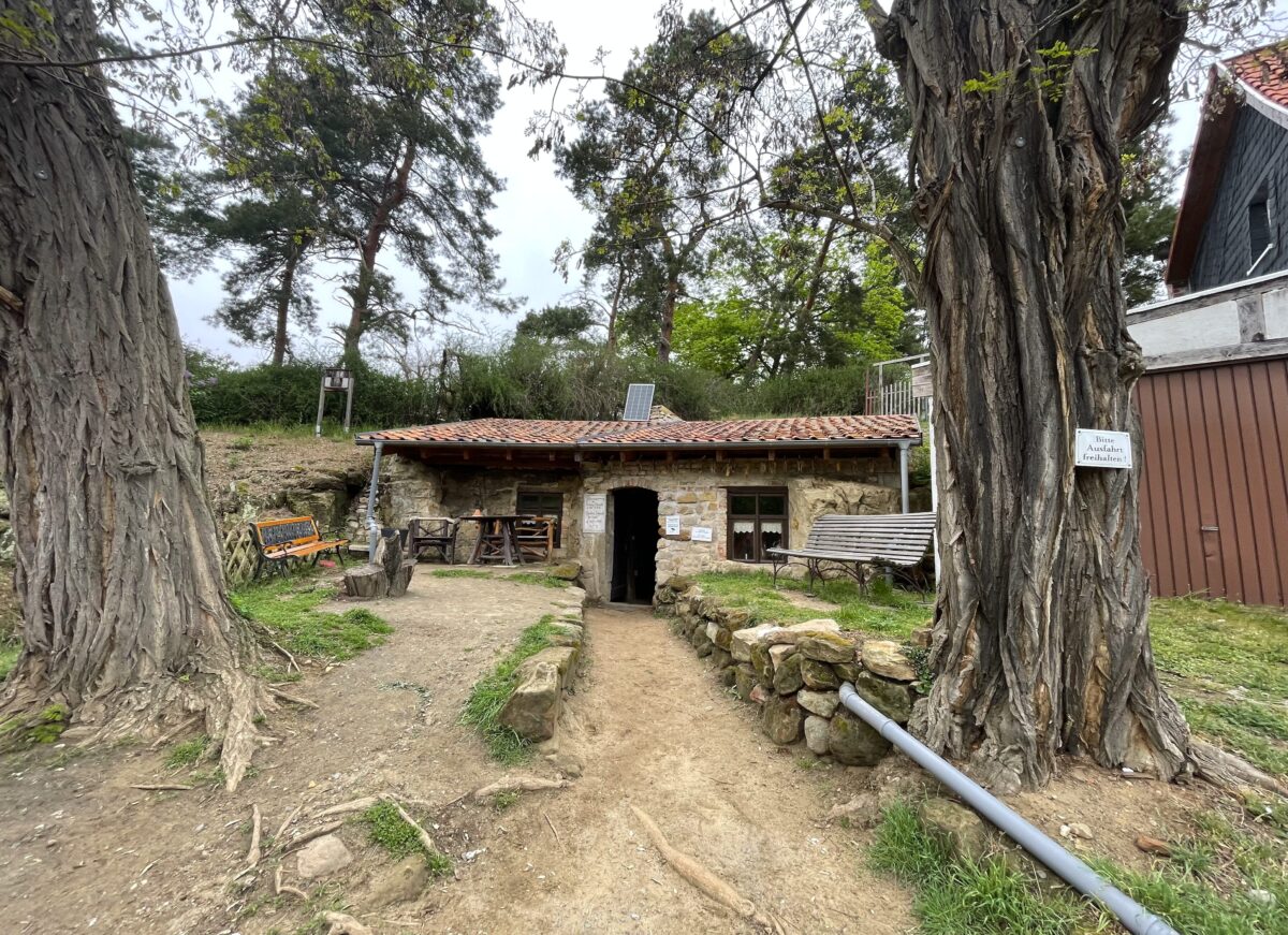 ランゲンシュタインには、公開されている洞窟住居がもう一ヶ所ありまして、さきほど通ってきた Landhotel Schäferhof Langenstein の裏手に、Höhlenwohnung an der Altenburg に通じる道がありますので、そこから行くのが良いでしょう。ちょっとしたハイキングコースを15分ほど歩きます。