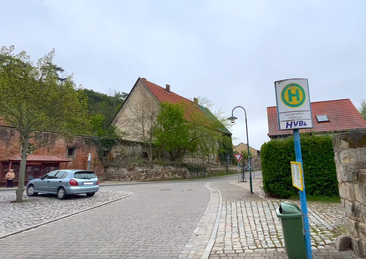 クヴェトリンブルクの駅前からは、旧市街と新市街を経てハルバーシュタットへ向かうバスが運行しており、ハルバーシュタット駅からバス(231番)に乗り換えて、ランゲンシュタインへ向かいます。