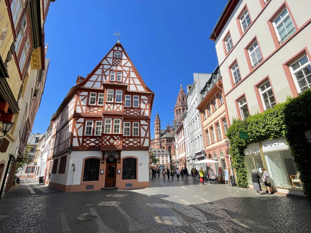 ヴィースバーデンから電車で約10分。マインツはラインラント=プファルツ州の州都で、マイン川とライン川の合流点に位置し、古くから重要な交易都市として栄えてきたため、「黄金のマインツ」とも呼ばれていたそうです。