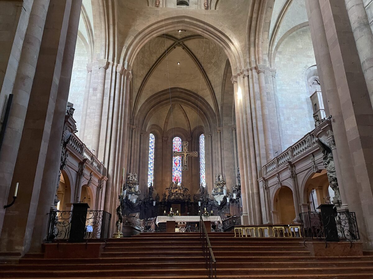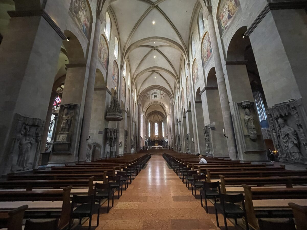 975年に起工され、1000年以上の歴史をもつマインツ大聖堂は、ケルン大聖堂、トリーア大聖堂と並び「ドイツ三大大聖堂」のひとつに数えられる歴史的建造物で、ロマネスク様式がベースであるものの、ゴシックやバロック様式が混在しています。