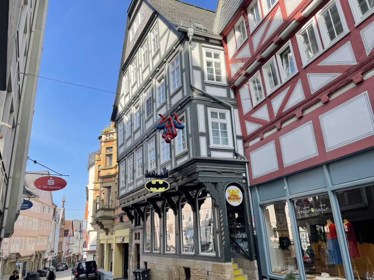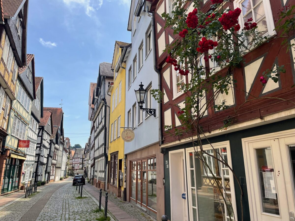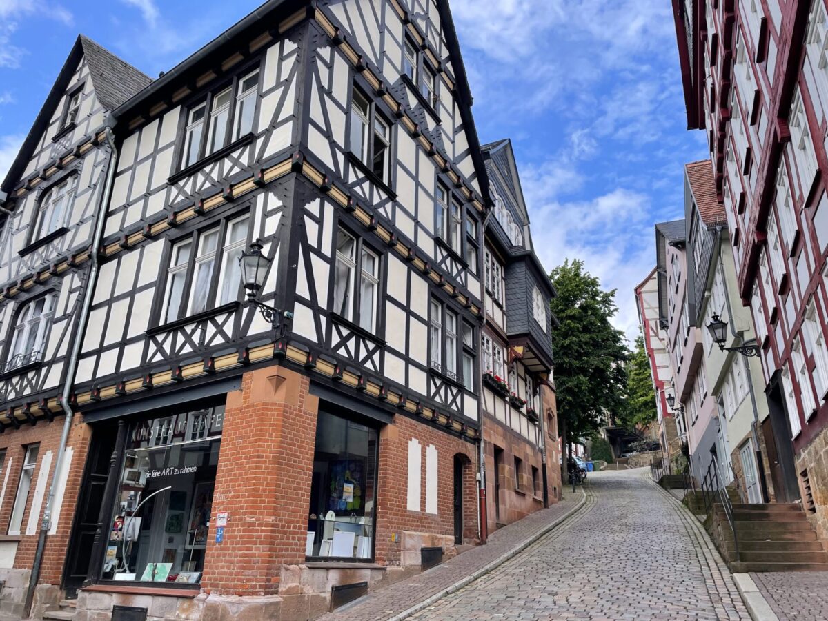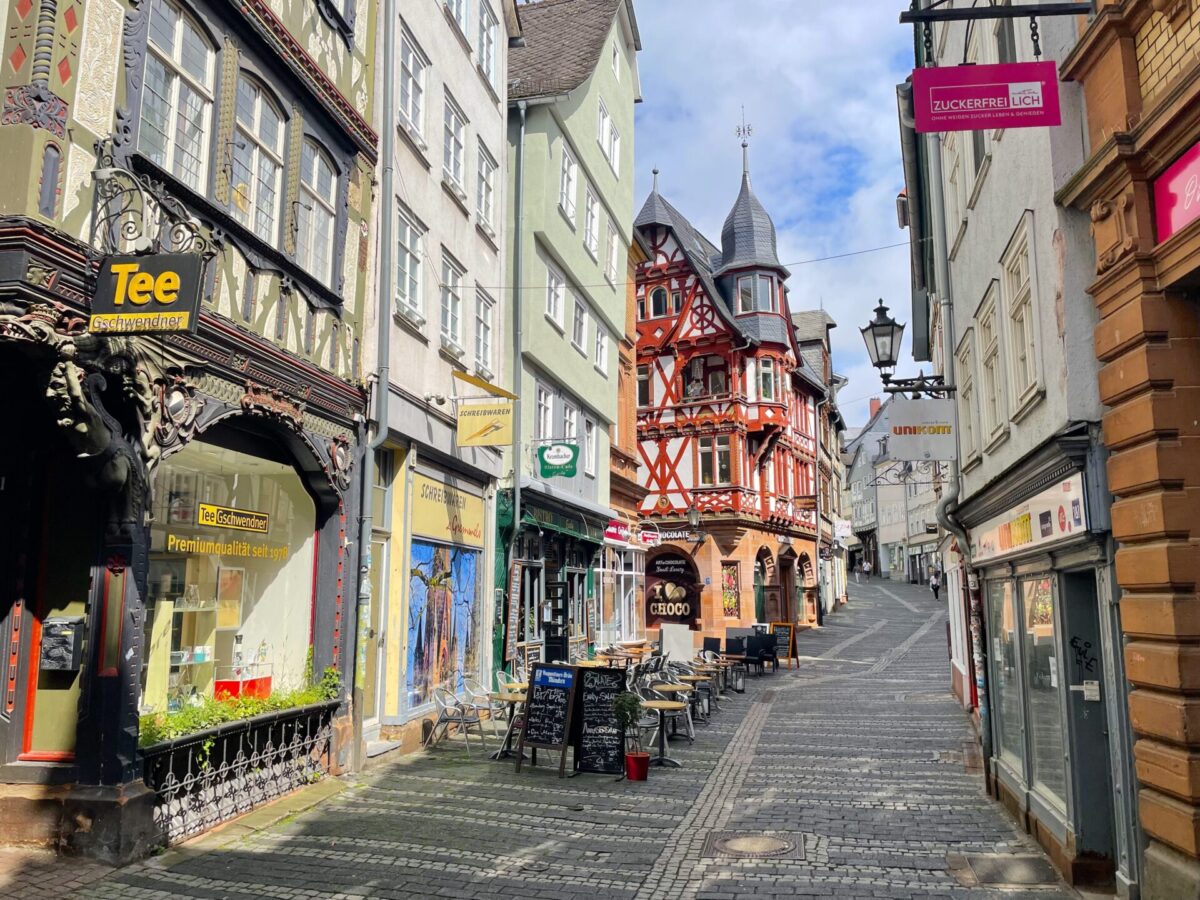 旧マールブルク大学から Lahn ラーン川を挟んだ東側にある Weidenhäuser Straße ヴァイデンホイザー通りにも、まるで映画のセットのように非常に美しい木組みの家々が立ち並んでいます。