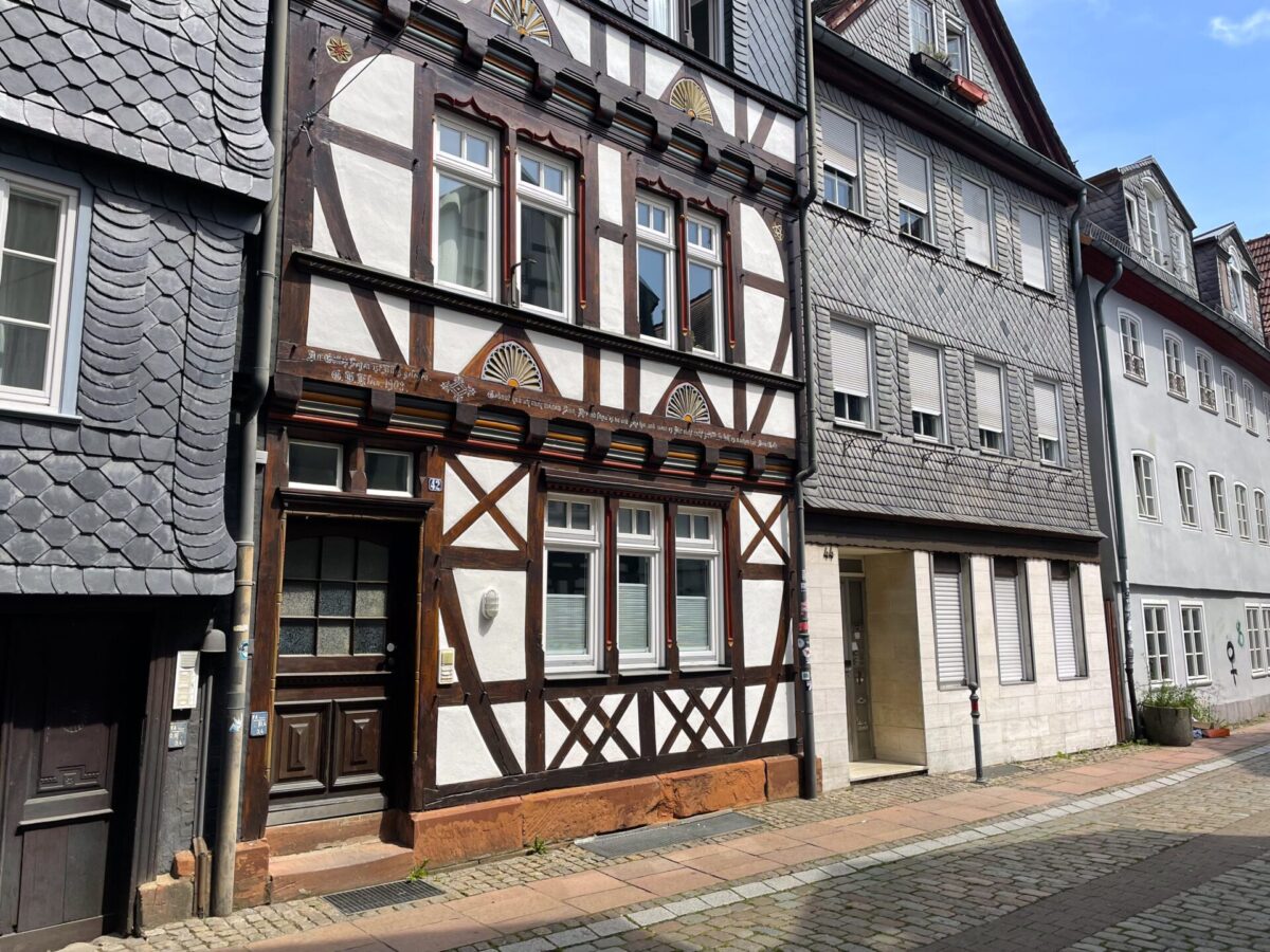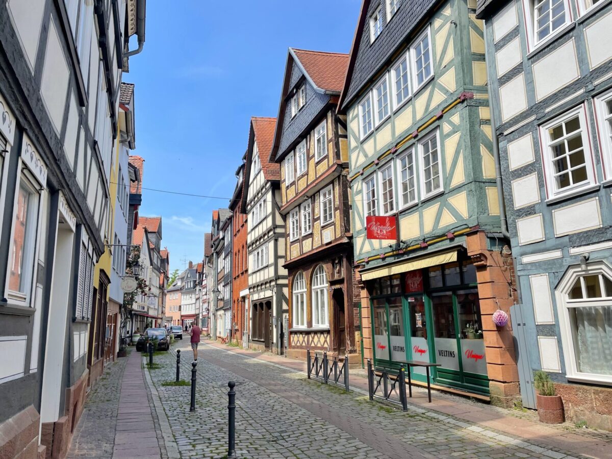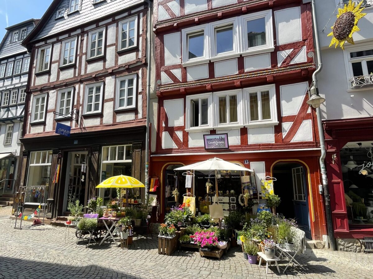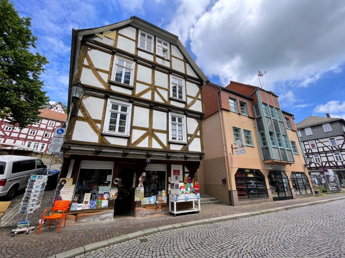 旧マールブルク大学から Lahn ラーン川を挟んだ東側にある Weidenhäuser Straße ヴァイデンホイザー通りにも、まるで映画のセットのように非常に美しい木組みの家々が立ち並んでいます。