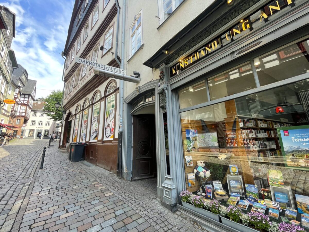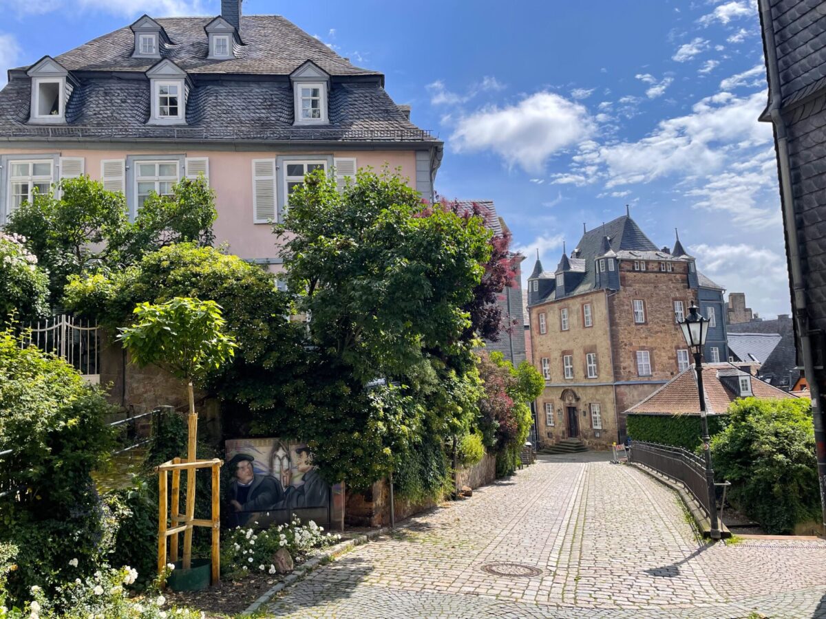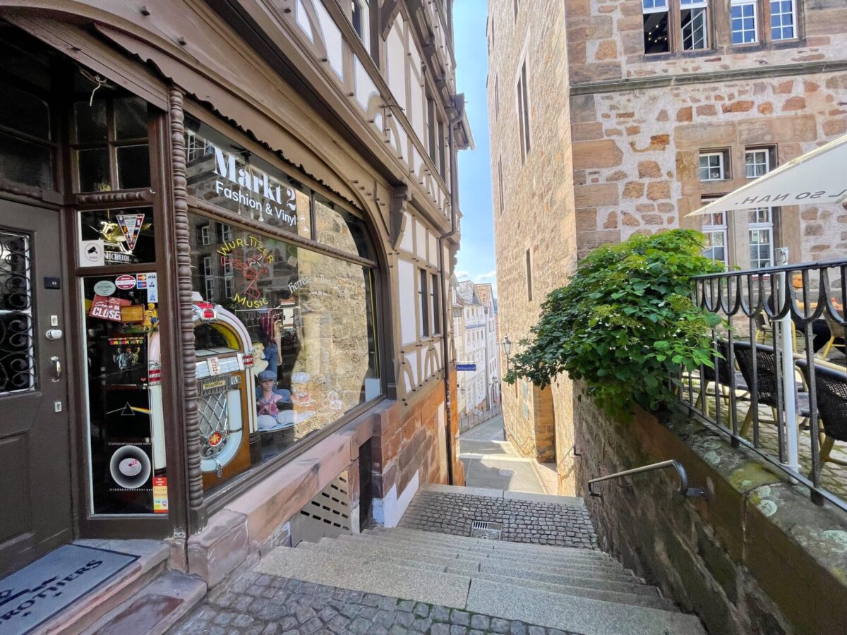 旧市街は、Lahntal ラーン渓谷の西岸からマールブルク城(方伯城)へ向かって斜面に広がっているため、Oberstadt(オーバーシュタット)と呼ばれており、坂道や階段がとても多いので、散策しているだけでもちょっとした運動になります。