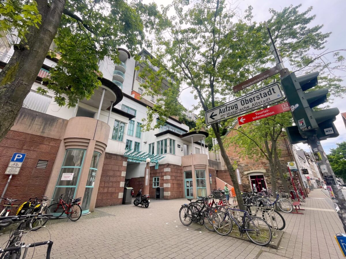 このような地形から、オーバーシュタットと新市街 Unterstadt(ウンターシュタット)との高低差の移動手段として、無料の公共エレベーターが2基、Pilgrimstein ピルグリムシュタインという通り沿いに設置されています。