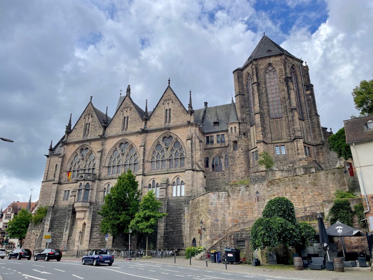 ヘッセン方伯フィリップ一世が1527年に設立した大学で、修道院を基に建てられたドイツ初のプロテスタント系の大学とのことで、教会と大学がひとつになった外観をしています。