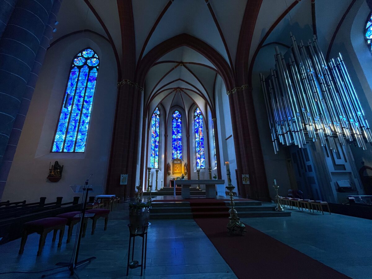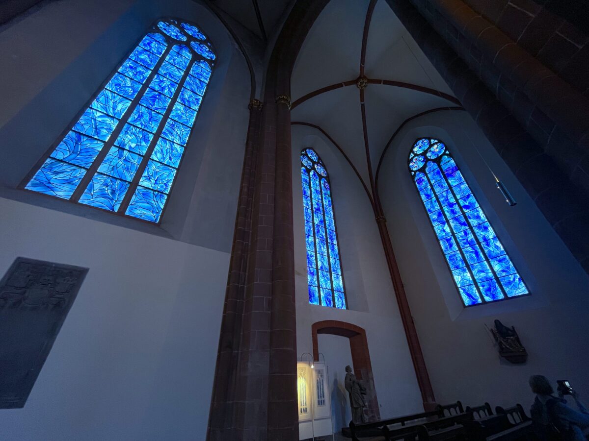 20 世紀美術の巨匠、そして色彩の魔術師とも称される Marc Chagall マルク・シャガール様のステンドグラスが拝めるということで、マインツ の聖シュテファン教会に行ってまいりました。
